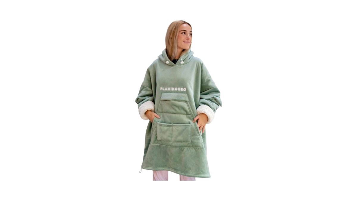 The perfect blanket sweatshirt for staying cozy around the house. It's also available in blue and gray , as well as a plaid design. Perfect for pairing with slippers.